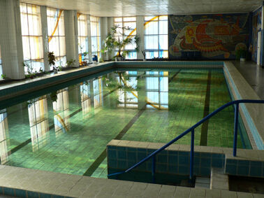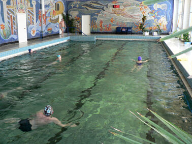 Плавательный бассейн расположен на первом этаже курортной поликлиники. Инструктор ЛФК в бассейне проводит: